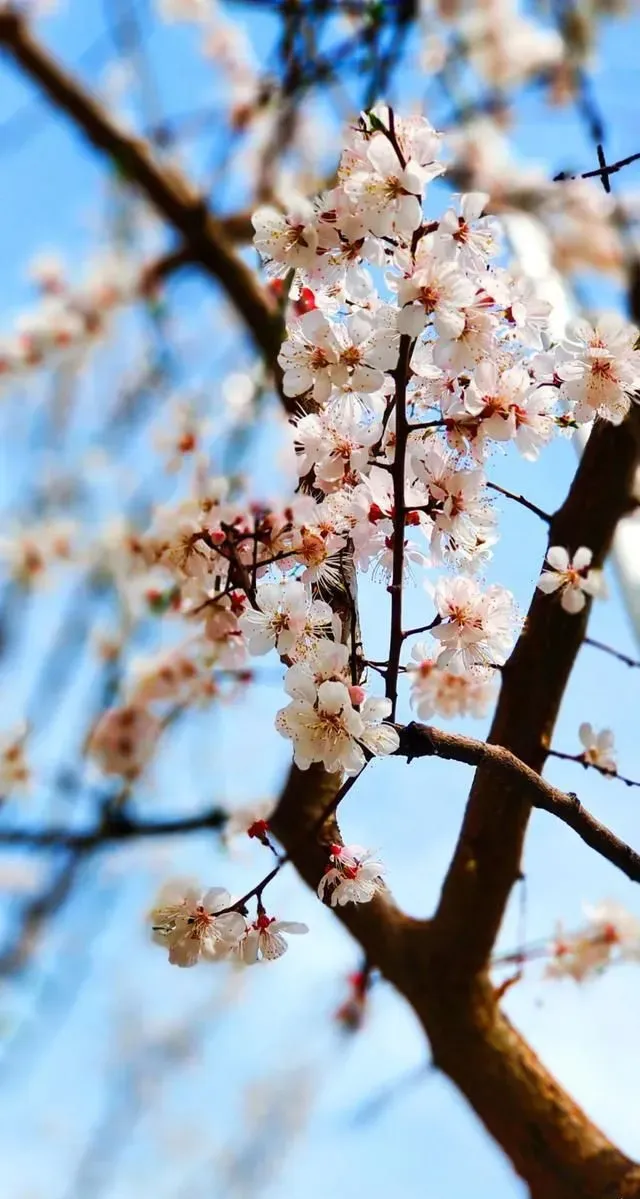 走在海棠路上,春风拂面,空气中散发着醉人的芳香,杏花一枝枝、一簇簇、一朵朵绽放,既有压弯枝头的美丽,又有独自争艳的妩媚,争相露出甜美的笑脸,向人们毫无保留地展示着她的妩媚多情。