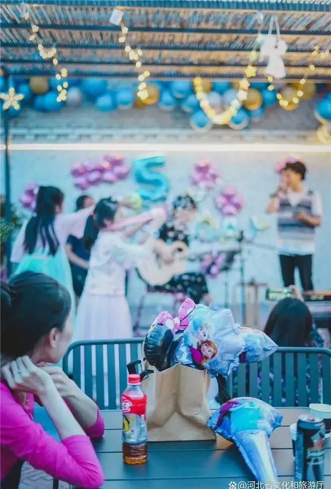 “昨夜的酒温暖了乡间柴火,那年桃花开满了小小村落,因为我们生长在桃花树下。”有酒有肉有吉他,院落稍稍布置就是一场热闹的“乡村音乐会”。