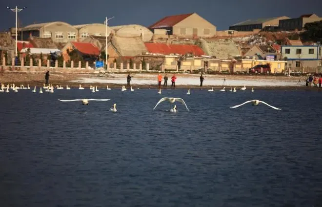 烟墩角是摄影爱好者拍天鹅的天堂,这个依山傍海的小渔村,因每年大量的天鹅在此过冬,吸引了许多人来拍照,上万只西伯利亚来的天鹅聚集在海面上非常壮观,这里也是世界上最大的大天鹅越冬乐园。
