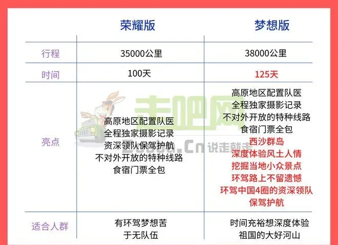 我们将环驾中国分为“荣耀版”(100天)和“梦想版”(125天)