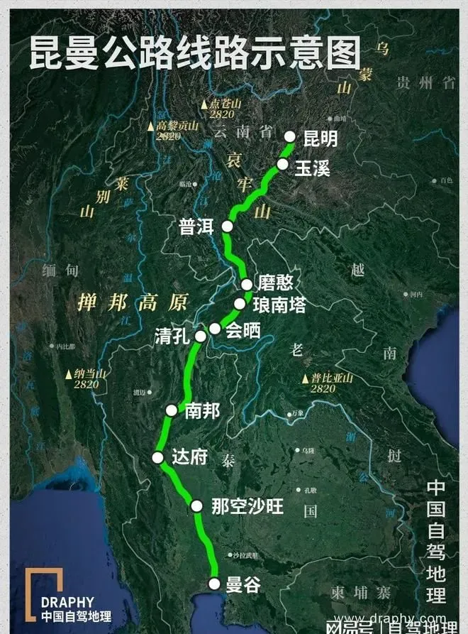 这条公路,从昆明出发,一路穿过磨憨、清孔,直达泰国曼谷,因而被称为昆曼公路。