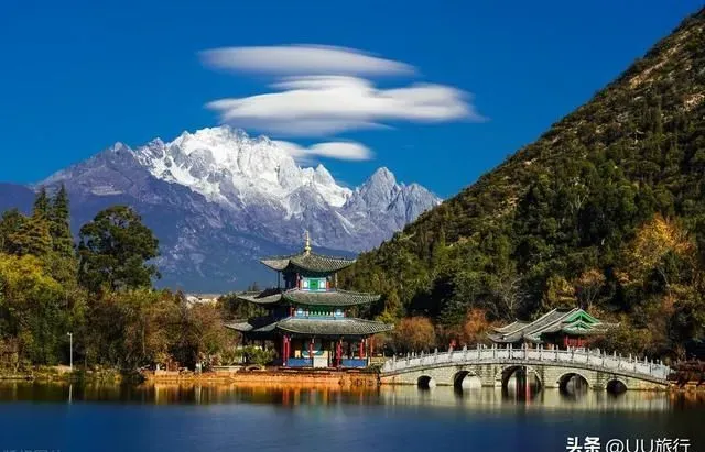 丽江最老牌的景区,也是一个少有人提起的小众景区,我们曾见过最早的丽江宣传图,就出自黑龙潭公园。一汪潭水,古老的亭子,背后是雪白圣洁的雪山。公园里有个象山可以爬,海拔2000多,有长焦的话拍玉龙雪山很震撼。当然,这里也是早晨观看玉龙雪山日照金山的好位置。