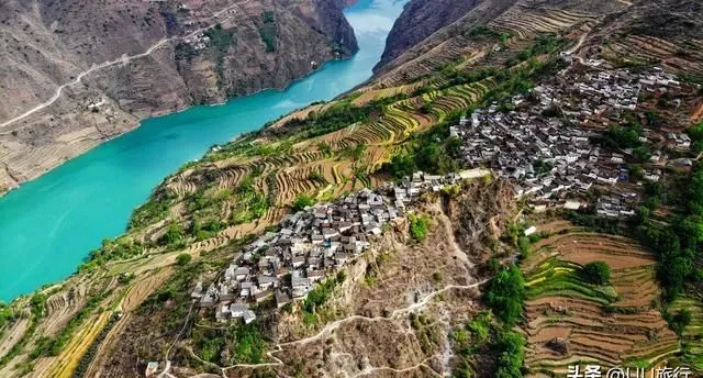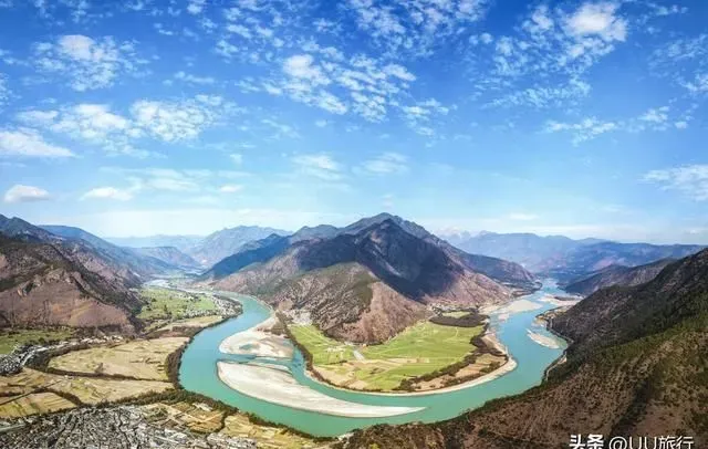 万里长江从世界屋脊奔腾而下,进入云南,与澜沧江、怒江一起在横断山脉的高山深谷中穿行形成了“三江并流”的壮丽景观。在云南境内,它被叫做金沙江,此处的大拐弯,平静安详,人们称这天下奇观为“长江第一湾”。短短几十公里外的虎跳峡却是浪涛翻涌。