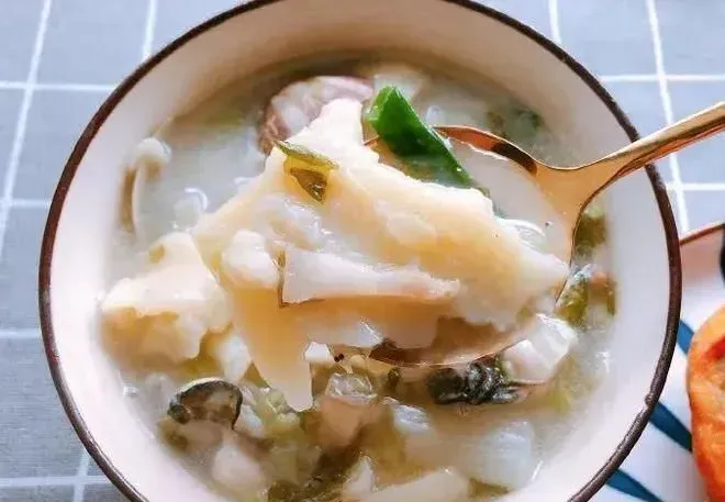 舀上一勺炝肉汤,慢慢地闻着、细细地品着、轻轻地嚼着,肉中含着小葱的香气、豆腐的清淡以及豆芽的水嫩香脆,肉里裹着这所有的香气,在嘴里说不出滑嫩细腻,让胃肠通体舒畅,有一种饱饱的舒畅感!