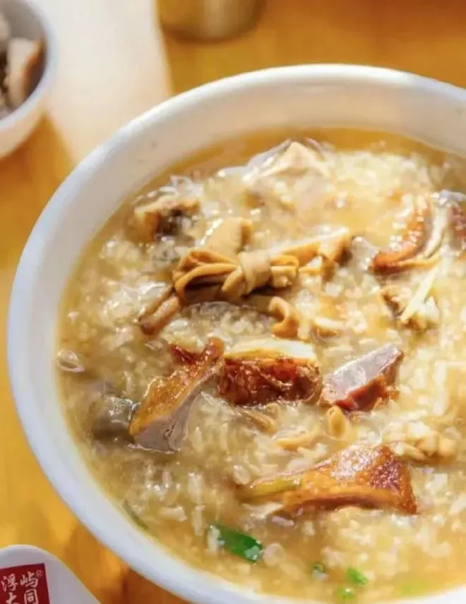 鸭肉粥的原汁原味,就在于一是鸭肉,二是粥。鸭子是厦门本土的,都是小鸭圣吉奥,味道鲜美,肉质细嫩;很多小吃店用的是黑米粥,据说更能够与鸭的风味相匹配。鸭肉粥补脑益智、滋阴养血的功效,让不少来厦门的游客慕名前来吃上一碗,消除旅途的疲劳。