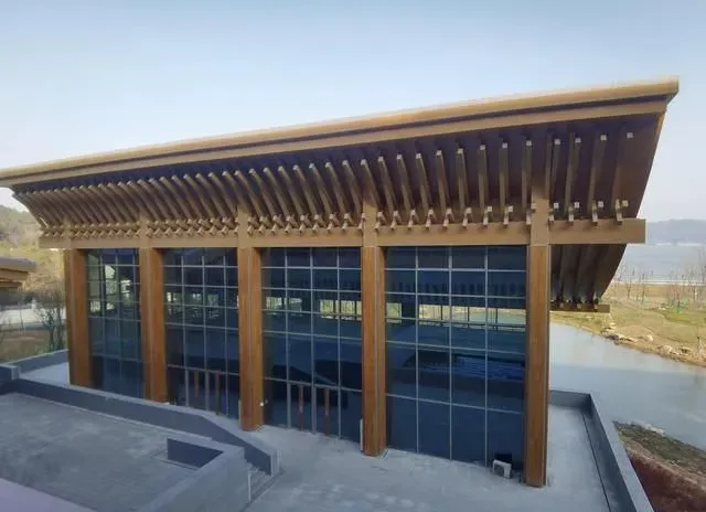 站在会议中心拍摄到的局部图,顶部估计是用了古代的榫卯结构,特别有艺术性