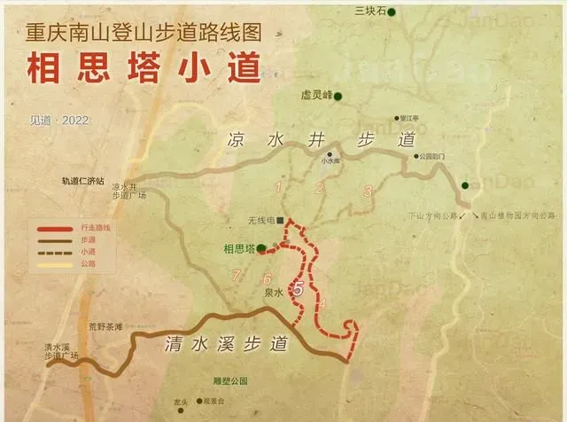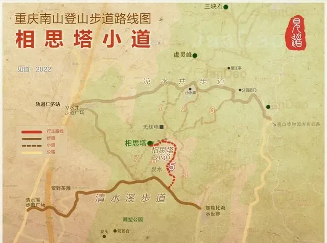 通往相思塔的小道,大致有7条(可从凉水井步道或清水溪步道上山),有些陡峭险峻还不容易找路。今天介绍一条从清水溪方向上山,相对比较好走的线路。