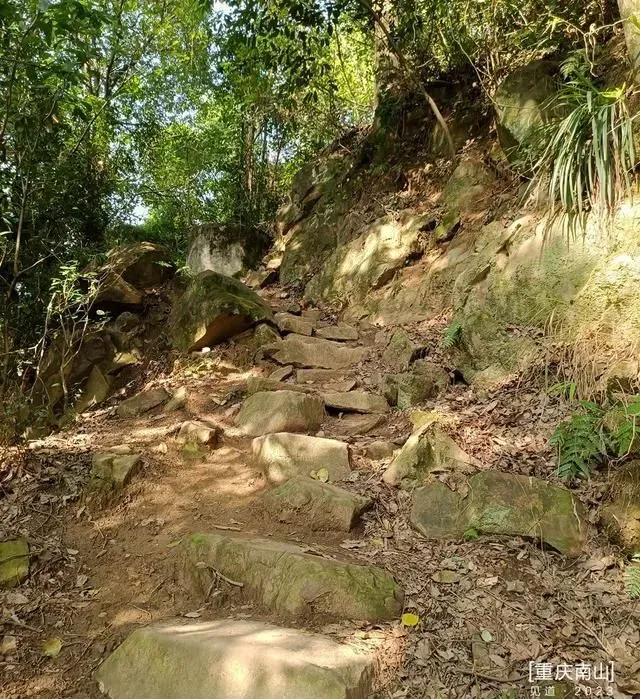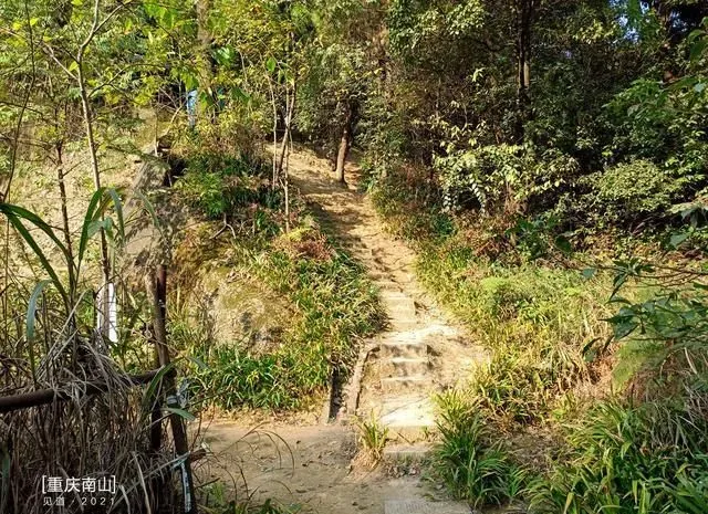 走完别墅区你会看到右前方是一条上山的石梯小路,沿着梯坎往上走即可。