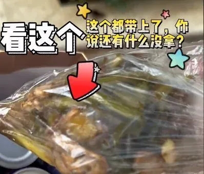 三亚的温度着实不低,这些看起来就已经不怎么新鲜的肉,被老两口装在一个空油壶里准备飞机上吃,并表示飞机上吃不完还可以拿回家包馅。