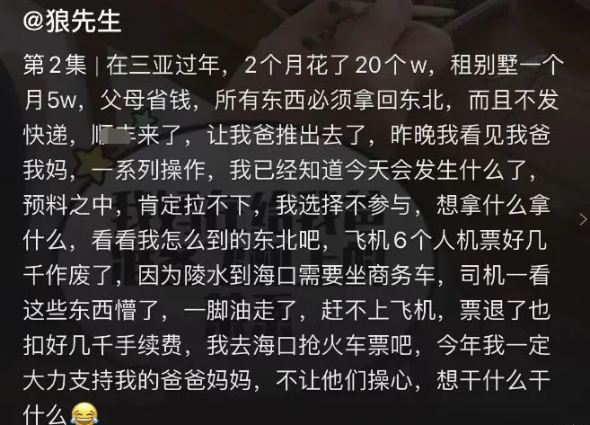 在三亚两个月花了20多万,但是父母为了省钱,把小年夜做的花卷吃到回家。