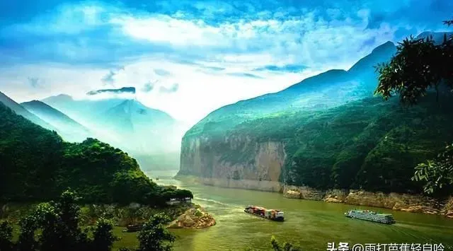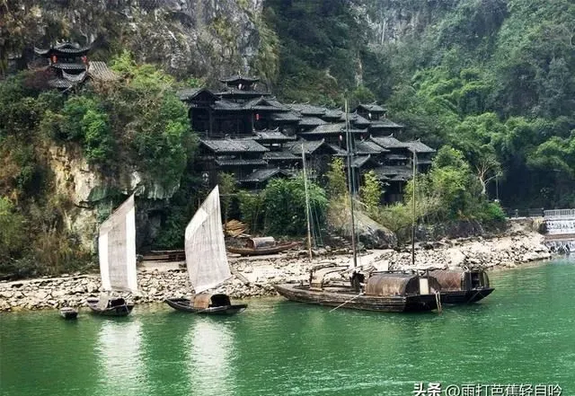 两岸崇山峻岭,悬崖绝壁,风光奇绝