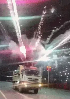这年头大家都喜欢边开车边放被称为"加特林"的网红烟花。骑着摩托车,开着小轿车放烟花已经不稀奇,开着土方车往四面八方放加特林,那简直就是公路大杀器。
