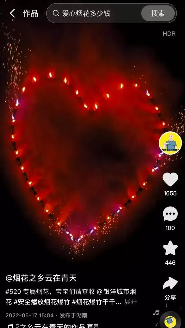 一位烟花厂商介绍某土豪大哥为心爱的女主播定制了一场价值十个W的烟花秀,视频的弹幕道出真相:如果你刷十个W的礼物给她,她会更感动。我有个真诚的小建议,直接转账不经过中间商,女主播感动加倍。