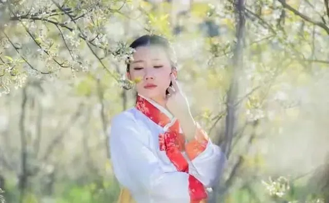如果觉得穿汉服有点麻烦,浅红色系的(粉色为佳)连衣裙,与山楂花相映衬,超淑女的!