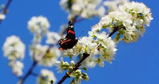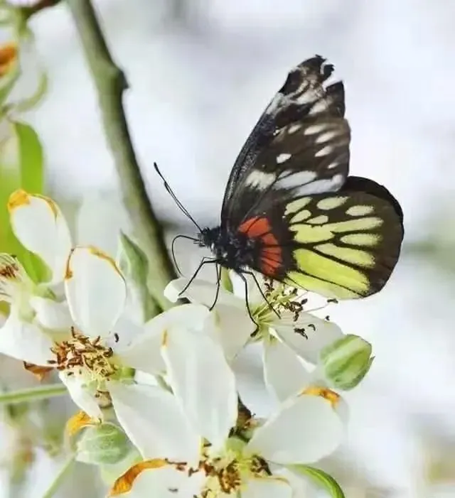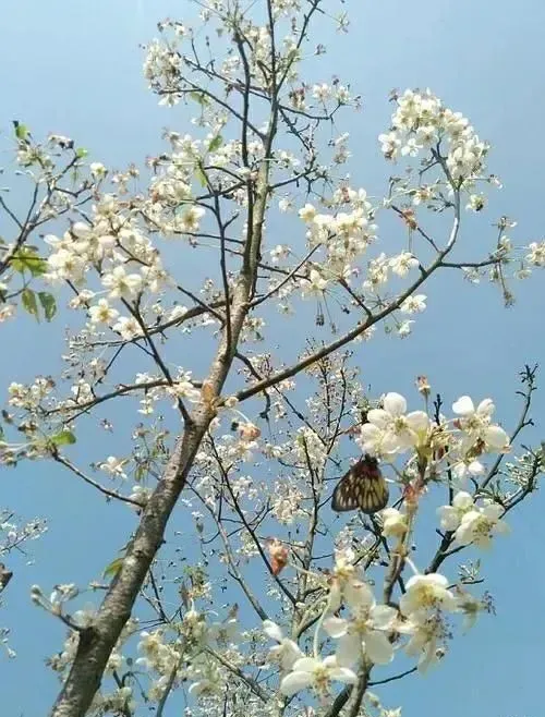 2月正是山楂花赏花的好时节,近千株雪白的山楂花漫山遍野绽放,引起蝴蝶围着花朵翻飞,小巧的花瓣在阳光映照下晶莹透亮。