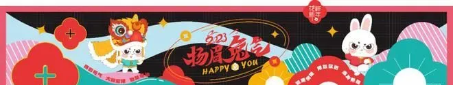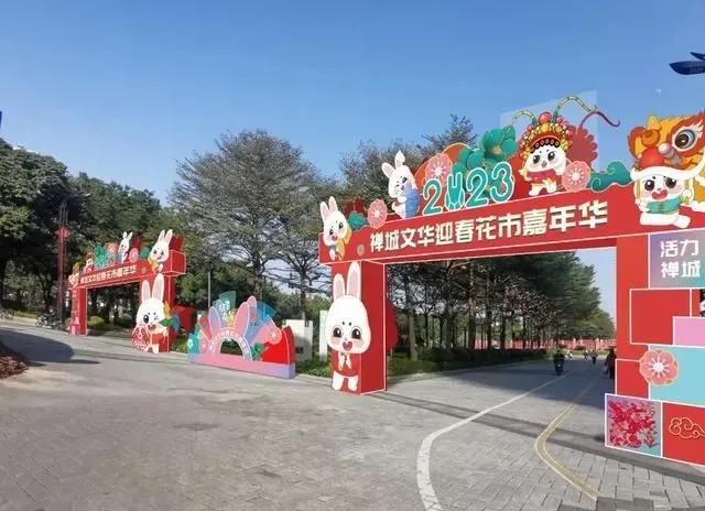 东门门楼延续了西门主门楼的风格,取材自当下流行的创意元素,让趣味融入生活。东门门楼设置了两组扬眉兔打卡点,搭配佛山非遗剪纸、花卉等元素,让打卡点在保持佛山年味特色的同时,不失现代潮流,能带给市民不同于以往新春花市的体验。