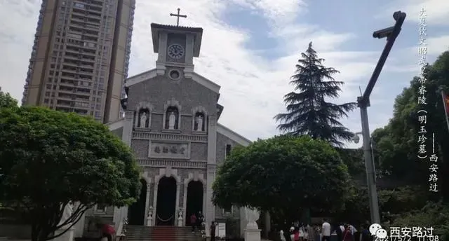 一般环卫工大多都是本地人,对附近的情况相对要了解的多,结果还真问对了人。他告诉我这里就是一个“皇帝”的坟墓,只是现在在维修,不让参观,还善意的提醒我啥也没有,不好看。我也只能说明此行就是专门来看这个墓的,于是他让我顺着北边的马路向东走,看见一个天主教堂对面就是明玉珍的墓。我道了谢就向东走去,路南是山坡,到也陡峭,都是用石块切成,以防塌方。而山顶的仿古建筑却就在头顶之上,绕着它走就行,不多时就走到天主教堂前,果然一排步行台阶顺着山势向上切成通往古建筑,但山坡并不多高。