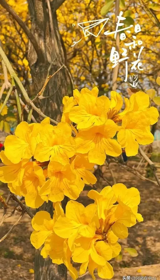 岭南春色分外美,满城金甲笑迎宾,岭南,春色,分外,满城,岭南春色分外美,满城金甲笑迎宾岭南春色分外美,满城金甲笑迎宾,枝头见花不见叶,一路芬芳一路金。岭南的春天满眼如画,广佛街头、道路两旁的的黄花风铃正灿烂盛开,金黄明媚的黄花风铃就像在聚灯光下尽情绽放。远看像一条黄色丝带,如“满城尽带...