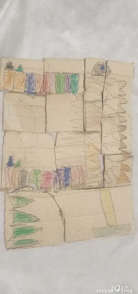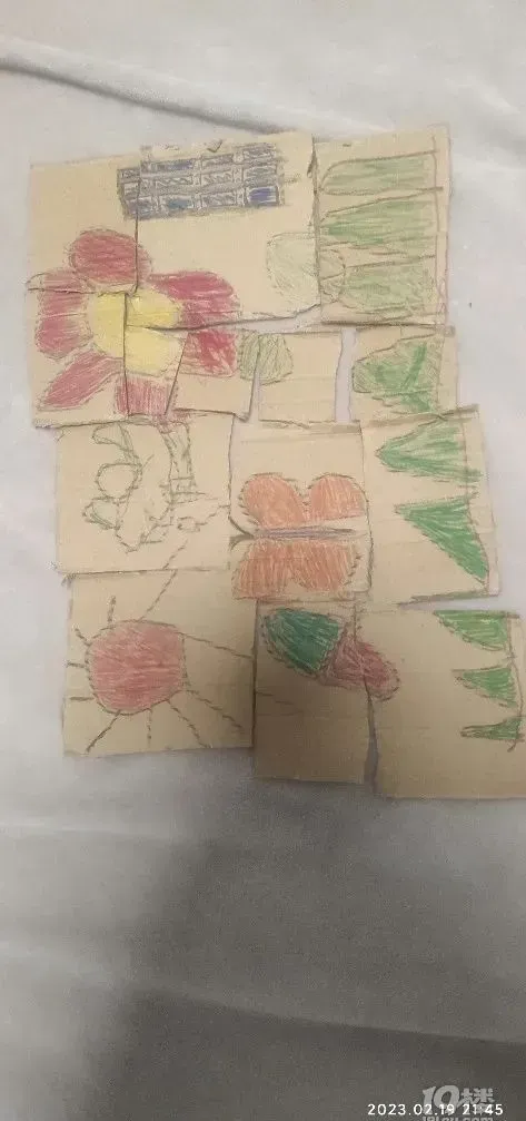 自己画的,画完涂色,剪块,变成了拼图,又给老爹省了不少大洋。