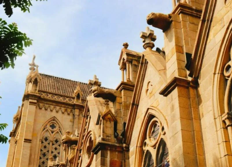 石室圣心大教堂石室圣心大教堂是天主教广州教区最宏伟、最具特色的大教堂,国内现存最宏伟的双尖塔哥特式建筑之一,是东南亚最大的石结构天主教建筑。由法国设计师设计,中国工匠建造而成。是全球四座全石结构哥特式教堂建筑之一,可与闻名世界的法国巴黎圣母院相媲美。教堂内部左右各有10根巨型石柱,急剧上升的尖拱设计使整个教堂有升腾的感觉。堂顶中间高两侧低,呈现起伏的态势,渲染出庄重的宗教气氛。正面大门上和四周墙壁分布的花窗棂,彩色玻璃窗上所绘的是圣经故事。