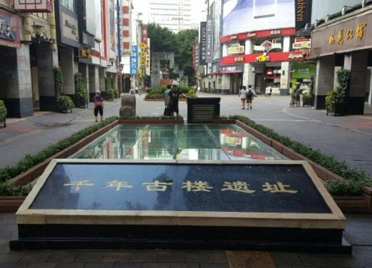 北京路千年古道遗址北京路千年古道遗址地处广州市中心,是历史上最早建立广州城的位置之所在。见证了广州城的历史,可以说是北京路步行街的“镇街之宝”。五朝11层的路面和宋代拱北楼基址,通过玻璃可以看得一清二楚的,是来广州的游客必游的景点。