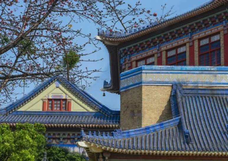 中山纪念堂中山纪念堂是为了缅怀伟大革命领袖孙中山而建,它见证了广州许多历史大事,富有纪念意义。如今是广州最具标志性的建筑物之一,也是广州市大型集会和演出的重要场所。这是一座宏伟的八角形宫殿式建筑,具有浓厚民族特色;中央高悬蓝底红边的漆金大匾,孙中山手书“天下为公”4个大字,雄浑有力。纪念堂后面还有独立的一个小房间——孙中山史迹陈列馆,介绍孙中山的生平。每年春季,纪念堂主建筑旁的红棉已经盛放枝头,火红的木棉与纪念堂的蓝色瓦顶相映成趣。