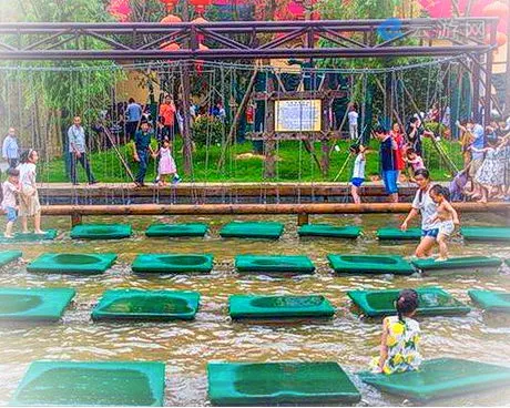 千古情大剧院前的水上运动场成了大小朋友的超级娱乐场。