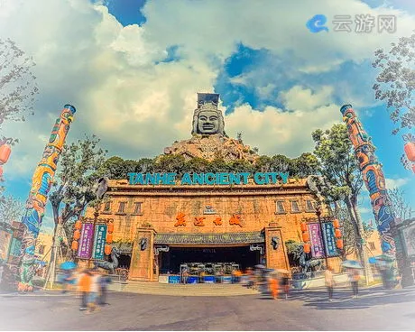 宋城炭河古城景区既有简朴庄严的宫殿庙宇,又有喧哗热闹的市井老街,处处编钟古乐、诗礼周风,仿佛三千年前的时光再次复活,无不传递着来自遥远年代的文明气息。西周王宫、古城墙、兵事殿、六艺之教、后宫等周文化风情神奇再现,活着的西周市井图、姜太公呼风唤雨法术馆、妲己幽魂鬼屋、太子阴魂听音室等高科技体验项目惊喜连连,大型歌舞《炭河千古情》、《妲己魅惑》、《褒姒沐浴》、《彩楼抛绣球》等演艺秀好戏连台,更有酒池肉林、烽火戏诸侯等互动游乐妙趣横生,以伟大的想象力和宏大叙事的方式,再现宁乡青铜时代鲜活的生产与生活空间、帝王与平民场景。